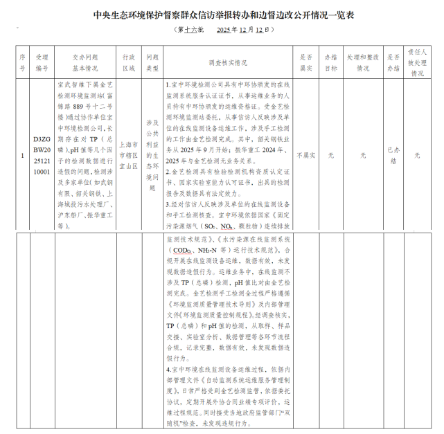 中央生态环境保护督察群众信访举报转办和边督边改公开情况一览表